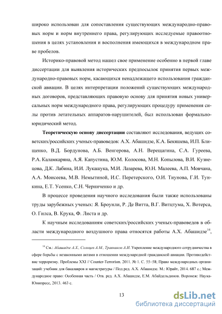 сертации научных трудов, а также широким спектром используемого нормативного и эмпирического материала: международные договоры в области воздушного, морского и других отраслей права, внутригосударственные нормативно-правовые акты иностранных государств, публикации в официальных средствах массовой информации и др.