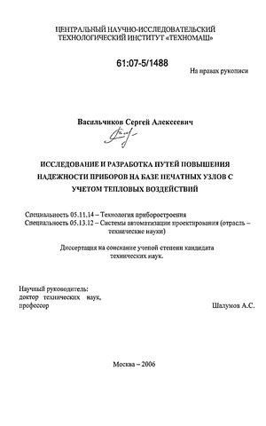 Исследование путей и разработка способа повышения надежности приборов на базе печатных узлов с учетом тепловых воздействий, основанного на методах оптимизации, а также методики его интеграции в конструкторско-технологическии цикл проектирования и изготовления приборов на базе ПУ.