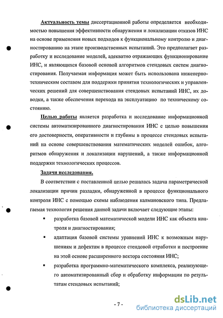 Целью работы является разработка и исследование информационной системы автоматизированного диагностирования ИНС с целью повышения его достоверности, оперативности и глубины в процессе стендовых испытаний на основе совершенствования математических моделей ошибок, алгоритмов обнаружения и локализации нарушений, а также информационной поддержки технологических процессов.