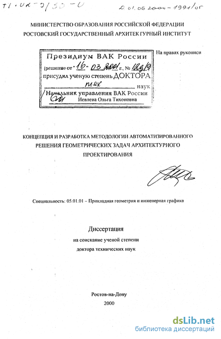 Диссертационная работа выполнена автором на кафедре графики и информационных технологий архитектурного проектирования Ростовского государственного архитектурного института. Результаты получены автором самостоятельно или в ходе научных исследований, вьтолняемых при непосредственном участии или под научным руководством автора в период с 1984 по 1999 гг. В исследованиях принимал участие коллектив архитекторов, инженеров и преподавателей кафедры и научно-исследовательской лаборатории систем автоматизированного проектирования объектов строительства.