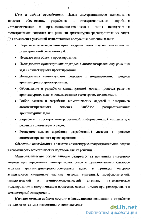 Цель и задачи исследования. Целью диссертационного исследования является обоснование, разработка и экспериментальная апробация методологических и организационно-технических основ использования геометрических подходов при решении архитектурно-градостроительных задач. Для достижения указанной цели ставились следующие основные задачи: