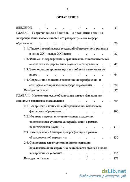 ГЛАВА II. Методологическое обоснование диверсификации как социально-педагогического явления ...... 99