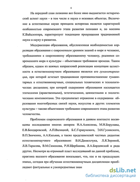 Проблемам современного образования в данном контексте посвящены исследования многих авторов: Н.А.Алексеева, М.Н.Берулавы, Е.В.Бондаревской, А.П.Валицкой, Б.С.Гершунского, Э.Н.Гусинского, В.П.Зинченко, А.А.Касьяна, а также представителей частных дидактик естественнонаучного образования: В.И.Данильчука, Л.Я.Зориной, Л.В.Тарасова, В.М.Симонова, Р.Н.Щербакова, Л.А.Бордонской и ряда других. Несмотря на огромный пласт исследований по данной проблеме, практика высшего образования показывает, что, как и на предыдущих этапах, сегодня при обучении естественнонаучным дисциплинам преобладают фактуальные и узкопредметные знания и представления; студен-