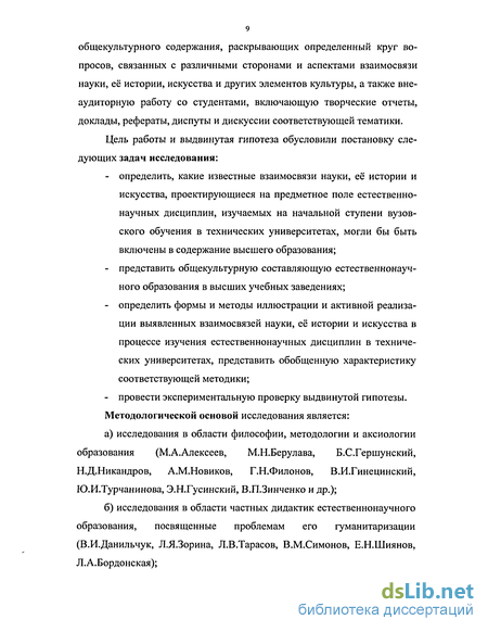 определить, какие известные взаимосвязи науки, её истории и искусства, проектирующиеся на предметное поле естественнонаучных дисциплин, изучаемых на начальной ступени вузовского обучения в технических университетах, могли бы быть включены в содержание высшего образования;