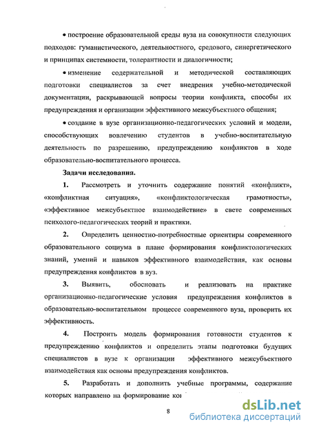 конфликтологических знаний, умений и навыков эффективного межсубъектного взаимодействия как основы предупреждения конфликтов в образовательной среде вуза.