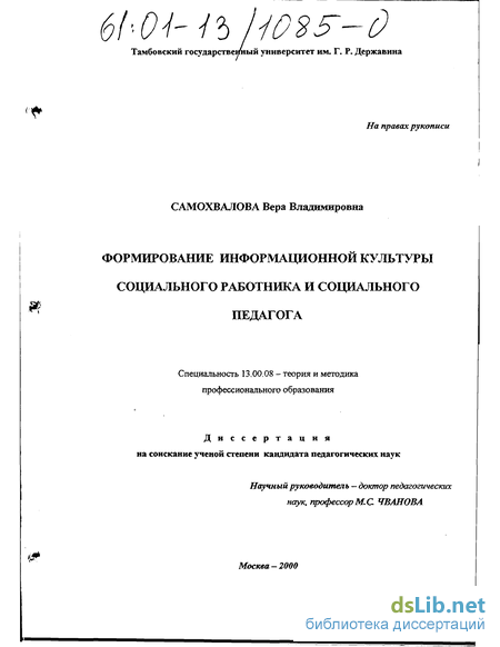 Формирование информационной культуры социального работника и социального педагога как научно - педагогическая проблема.