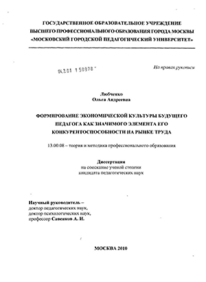 - Экономическая культура будущего педагога и ее взаимосвязь с его конкурентоспособностью на рынке труда
