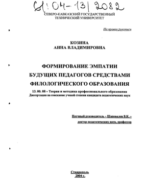 Предметом исследования выступает процесс формирования эмпатии у будущих учителей в педагогическом институте средствами филологического образования.