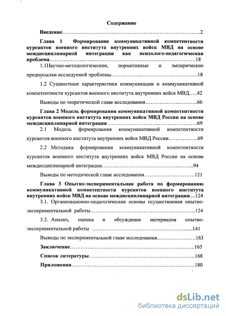 Глава 1 Формирование коммуникативной компетентности курсантов военного института внутренних войск МВД на основе междисциплинарной интеграции как психолого-педагогическая проблема 18