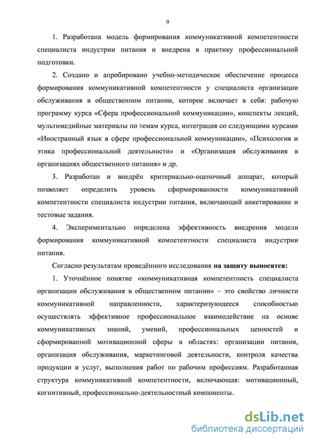 - Теоретико-методологические основы формирования коммуникативной компетентности специалиста индустрии питания среднего звена