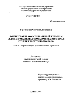Однако анализ литературы показал, что исследователями уделяется все еще недостаточное внимание формированию коммуникативной культуры будущего медицинского работника в процессе изучения иностранного языка.