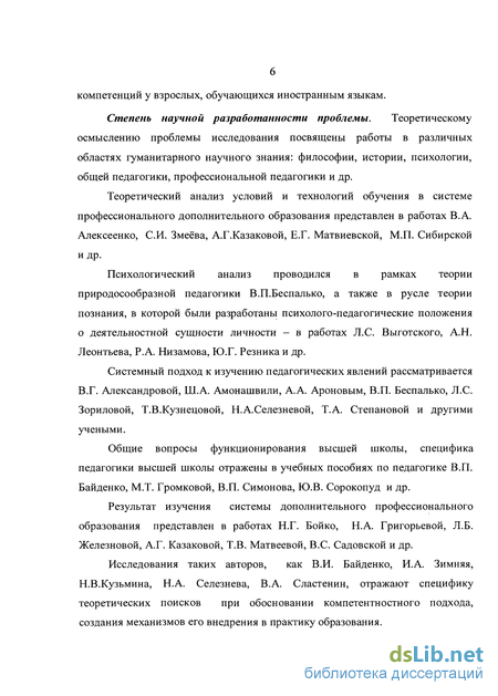 К сожалению, нам не удалось обнаружить работы, посвященные строго формированию коммуникативных компетенций у взрослых, обучающихся иностранному языку в условиях дополнительного профессионального образования, что и обусловило выбор нами рассматриваемой темы. Правда, после сравнительно-сопоставительного анализа большого количества специальных источников по родственной проблеме, мы можем констатировать, что ведущими российскими исследователями проблемы обучения иностранному языку взрослых разрабатываются принципы обучения на современном этапе, ставятся проблемы разностороннего