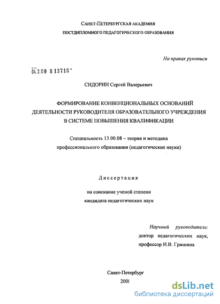 Следовательно, возникает противоречие между необходимостью формирования конвенциональных оснований деятельности руководителя образовательного учреждения и недостаточностью разработки научно-педагогических подходов к построению такого процесса в системе повышения квалификации.