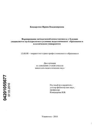 Предмет исследования: процесс формирования методической компетентности будущих специалистов-культурологов в условиях педагогического образования в классическом университете.
