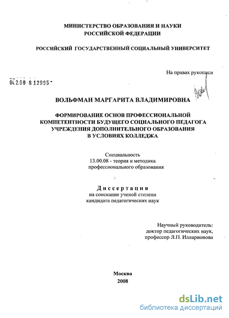 Вместе с тем, недостаточное раскрытие получила специфика профессиональной компетентности социального педагога учреждений дополнительного образования и обеспечение ее реализации в среднем профессиональном учебном заведении с учетом современных требований к их профессионализму и особенностей работы в условиях учреждений дополнительного образования.