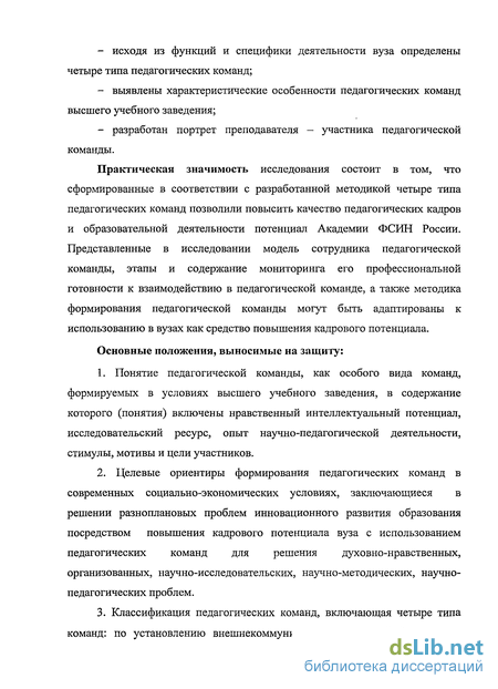 Степень изученности темы. В отечественной педагогике широко известны работы B.C. Афанасьева и Э.Г. Юдина, освещающие специальные вопросы теории управления. Программно-целевой подход представлен в работах И.С. Ладенко и др. Целеполаганию и регуляции педагогической деятельности посвятили свои исследования О.А. Конопкин, O.K. Тихомиров. Педагогическое управление рассматривали Ю.В. Васильев, М.М. Поташник и др. Теория педагогической интеграции раскрыта в работах А.П. Беляевой, М.Н. Берулавы. Системогенез профессиональной деятельности рассмотрен В.Д. Шадриковым. Управление кадровым потенциалом вуза в современных условиях представлено в работах Т.И. Заславской, А.Г. Здравомыслова и др. Н.П. Пищулин, Г.Н. Сериков указали на необходимость поиска новых моделей управления педагогическим коллективом вуза. Д. Хан разработал концепцию контроля развития коллектива вуза и высказал мнение, что коллектив должен менять свою структуру в зависимости от тактических задач. В научно-педагогической и учебно-методической литературе имеются немногочисленные исследования, рассматривающие отдельные аспекты командообразования. В работах Г. Гертер, О.Н. Громовой, О.Ю. Ефремова, Т.Д. Зинкевич-Евстигнеевой, Ю.В. Козырева и др. раскрываются вопросы содержательной составляющей командообразования. Проблемой формирования педагогических команд по отношению к условиям общеобразовательной школы занимались И.В. Жуковский и Д.В. Григорьев.
