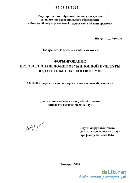 ГЛАВА 2. Формирование профессионально-информационной культуры педагогов-психологов в вузе