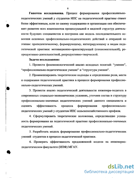 В качестве гипотезы диссертационного исследования мы выдвинули предположение о том, что процесс формирования профессионально-педагогических умений у студентов ИПС на педагогической практике станет более эффективным, если по своему содержанию и организации она обеспечивает развитие всех компонентов процессуальной и видовой структур деятельности будущих специалистов.