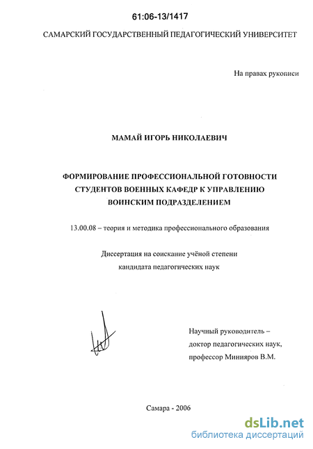 4 учных исследований, процесс формирования профессиональной готовности студентов военных кафедр гражданских вузов требует дополнительного изучения. Хотя различные его аспекты нашли своё отражение в военной педагогике: принципы и методы военного управления (М.А.Гареев, С.В.Гончаров, С.Б.Иванов, А.В.Квашнин и др.); военная профессиология и профессиональная компетенция (В.Ф.Ковалевский, И.Ю.Коробейникова, Л.Ю.Кривцов и др.); психолого-педагогические основы подготовки военных специалистов (И.И.Александров, А.В.Барабанщиков, А.И.Скородумов, Л.А.Усольцева, и др.). Однако в существующей системе образования приоритетом в обучении офицеров запаса является подготовка их не только к войне, но и к управлению повседневной деятельностью вверенного им подразделения, что определено Уставами Вооружённых Сил и иными руководящими документами.