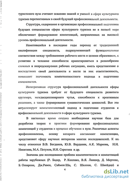 Структура, содержание и организация профессиональной подготовки будущих специалистов сферы культурного туризма не в полной мере обеспечивают формированйё^компетенций, -направленных._ на _ высокий уровень профессиональной деятельности.