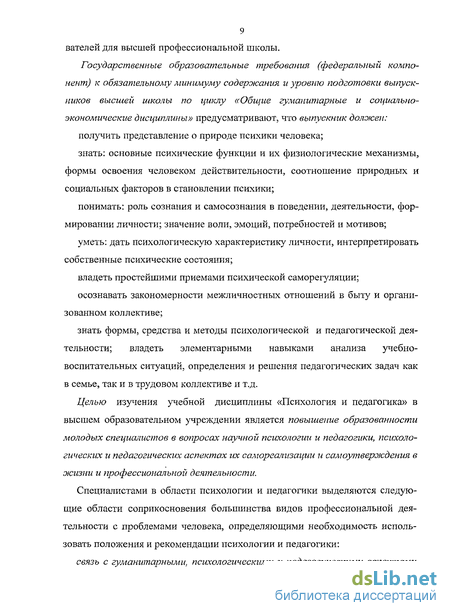 Являясь одной из основных гуманитарных дисциплин в учреждениях высшего профессионального образования, учебная дисциплина «Психология и педагогика» способствует разрешению противоречия между возрастающей потребностью в развитии личности студента, востребованностью психолого-педагогических знаний (в процессе обучения в вузе и будущей профессиональной деятельности) и существующей практикой обучения психологии и педагогике в вузе. Включение учебной дисциплины «Психология и педагогика» в государственный образовательный стандарт высшего профессионального образования (цикл «Общие гуманитарные и социально-экономические дисциплины» федерального компонента), позволило обеспечить базовую психолого-педагогическую подготовку студентов, повысило мотивацию к её изучению и интерес к психолого-педагогическим знаниям. Усвоение содержания данной учебной дисциплины позволяет сформировать у студентов - будущих специалистов и руководителей систему психолого-педагогических знаний, умений и навыков, которые они смогут использовать в профессиональной деятельности для повышения ее эффективности. Важность психолого-педагогической подготовки студентов университета состоит также в том, что именно университеты являются базой подготовки препода-