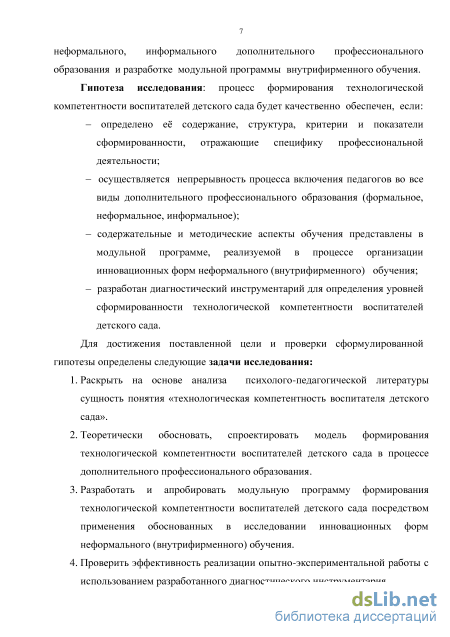Методика формирования технологической компетентности воспитателей детского сада в процессе дополнительного профессионального образования
