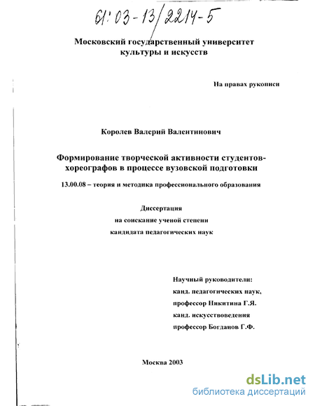 Глава 1. Теоретические основы развития творческой активности студента-хореографа в процессе вузовской подготовки 14-78