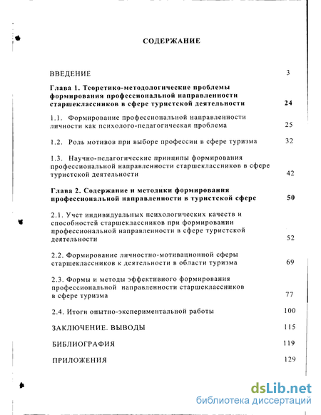 Глава 2. Содержание и методики формирования профессиональной направленности в туристской сфере 50