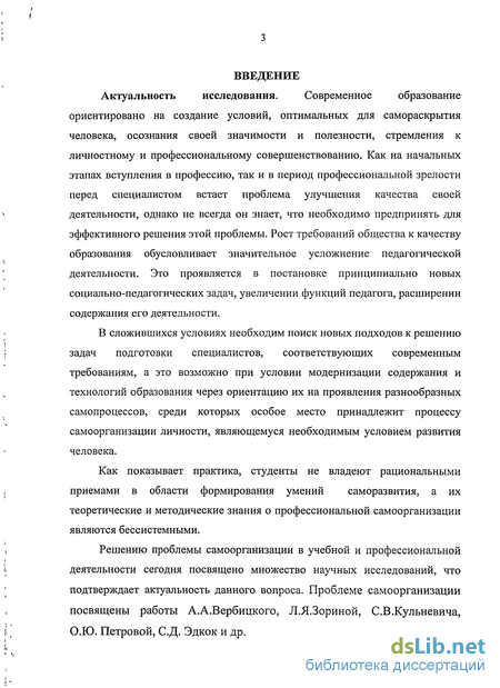 Решению проблемы самоорганизации в учебной и профессиональной деятельности сегодня посвящено множество научных исследований, что подтверждает актуальность данного вопроса. Проблеме самоорганизации посвящены работы А.А.Вербицкого, Л.Я.Зориной, С.В.Кульневича, О.Ю. Петровой, С.Д. Эдкок и др.