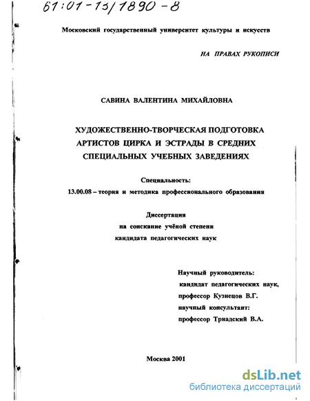 специальных дисциплин развивают технологические и духовно-творческие направления процесса профессиональной подготовки специалиста цирка и эстрады. Апробация результатов исследования осуществлена: