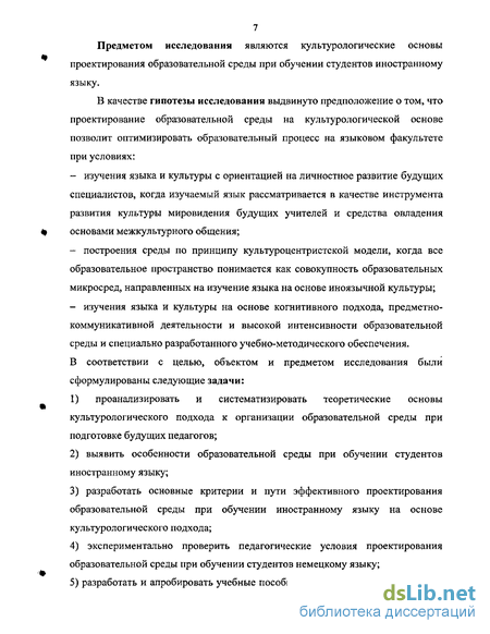 Предметом исследования являются культурологические основы проектирования образовательной среды при обучении студентов иностранному языку.