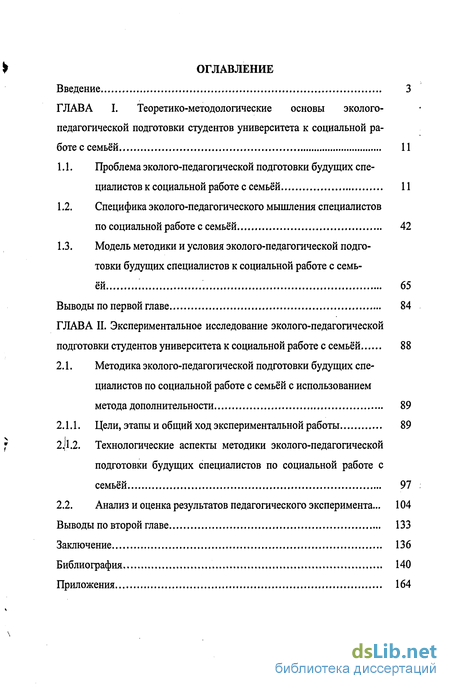 ГЛАВА I. Теоретико-методологические основы эколого-педагогической подготовки студентов университета к социальной работе с семьёй 11