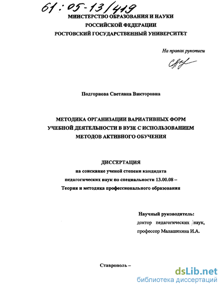 Актуальность и пробелы в разработке обозначенной нами проблемы, а также настоятельная потребность образовательной практики в ее решении обусловили выбор темы исследования, проблема которого сформулирована нами следующим образом — каковы педагогические и методические условия, при которых возможна эффективная организация учебной деятельности в вузе с использованием вариативных форм и методов активного обучения.