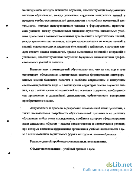 Наличие этих противоречий обусловлено тем, что до сих пор в вузе отсутствует обоснованная методическая система формирования интегрированных знаний будущего педагога в наиболее современном и наилучшем систематизированном виде — с точки зрения структуры самого научного знания, а не с точки зрения возможностей его освоения студентом, необходимости применения в дальнейшей деятельности, субъективности восприятия приобретаемого знания.