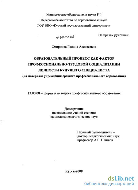 - . Роль образовательного процесса учреждений среднего профессионального образования в профессионально-трудовой социализации будущего специалиста