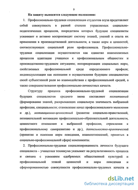 1.1. Сущность, содержание и структура профессионально-трудовой социализации студентов ссузов 15