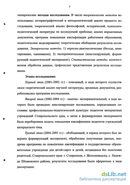 Первый этап (2001-2002 гг.) - поисковый, в ходе которого осуществлялся теоретический анализ научной литературы, архивных документов, разрабатывалась программа исследования.