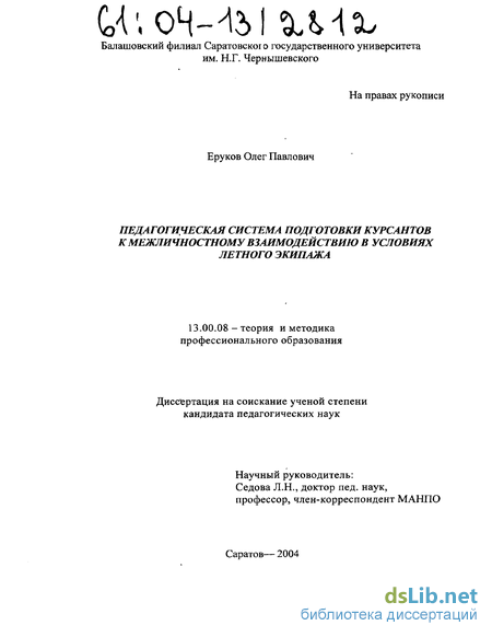 Это определило выбор темы исследования «Педагогическая система подготовки курсантов к межличностному взаимодействию в условиях летного экипажа».