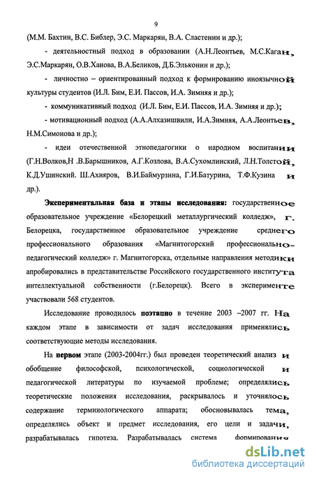9 (М.М. Бахтин, B.C. Библер, Э.С. Маркарян, В.А. Сластенин и др.);
