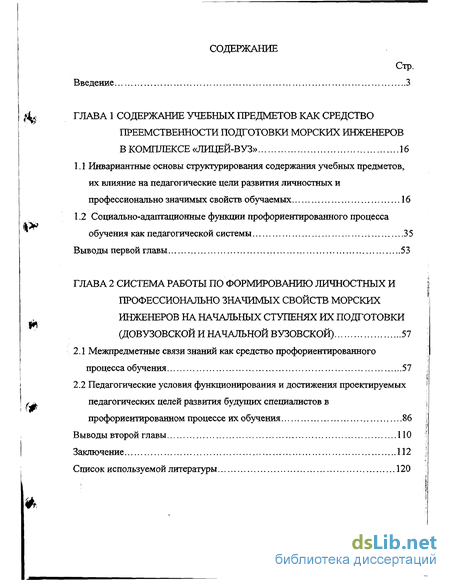 ГЛАВА 1 СОДЕРЖАНИЕ УЧЕБНЫХ ПРЕДМЕТОВ КАК СРЕДСТВО ПРЕЕМСТВЕННОСТИ ПОДГОТОВКИ МОРСКИХ ИНЖЕНЕРОВ В КОМПЛЕКСЕ «ЛИЦЕЙ-ВУЗ» 16