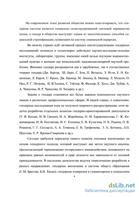 Впервые термин «гендер» был использован в научной литературе в середине 1980-х годов Дж. Скотт, американской исследовательницей. Целью его введения стало разграничение социального и биологического толкования ролевых отношений женщин и мужчин в социуме [366]. Вначале понятие «гендер» противопоставлялось категориям «пол» и «род», которые были природными, стабильными и естественными, а «гендер» создавался, конструировался обществом, предписывался его членам культурными традициями и институтами социального контроля [158].