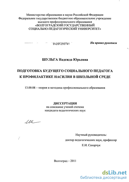 Анализ результатов имеющихся исследований показывает, что у ученых нет единства во мнениях относительно психолого-педагогической сущности насилия в школьной среде, содержания и структуры профессиональной готовности социальных педагогов к его профилактике, отсутствует теоретическое обоснование технологий подготовки будущего социального педагога в вузе к исследуемой работе.