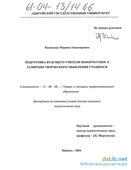 Однако, анализ психолого-педагогической и методической литературы показал, что, несмотря на большое число исследований, вопросы подготовки студентов педагогических специальностей к развитию творческого мышления учащихся, в частности на уроке информатики, решены не в полной мере и требуют более детального изучения. Недостаточно раскрыты формы и методы, обеспечивающие целенаправленное, эффективное использование новых техно-