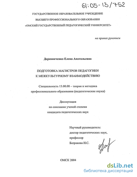 педагогики к межкультурному взаимодействию. Необходимость ее решения обусловила выбор темы диссертационного исследования «Подготовка магистров педагогики к межкулътурному взаимодействию».