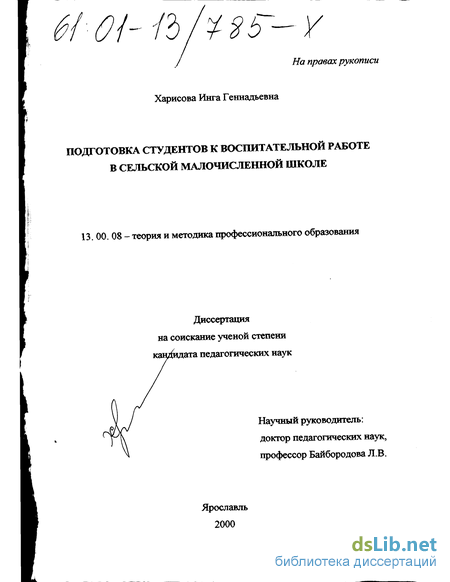Глава 1 Подготовка студентов к воспитательной работе в сельской малочисленной школе как педагогическая проблема 13