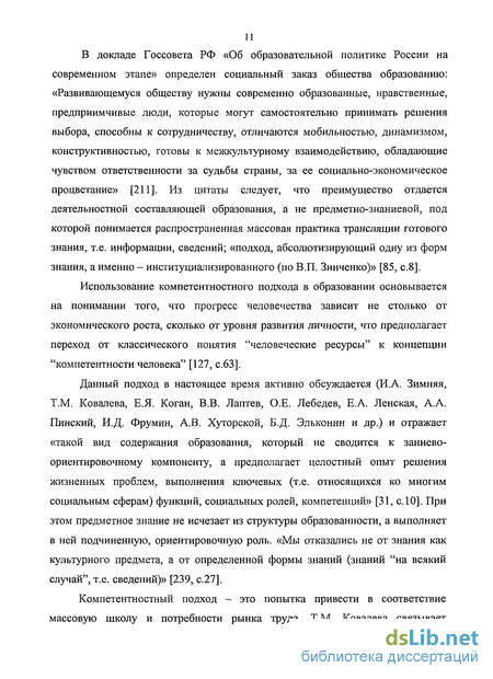 Использование компетентностного подхода в образовании основывается на понимании того, что прогресс человечества зависит не столько от экономического роста, сколько от уровня развития личности, что предполагает переход от классического понятия "человеческие ресурсы" к концепции "компетентности человека" [127, с.63].