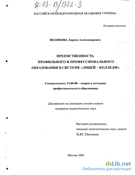 Выявлены структурное, содержательное, процессуальное направления в построении преемственных связей в между профильным и профессиональным образованием в системе «лицей-колледж».