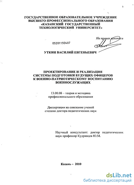 Методы теоретического анализа использовались на всех этапах исследования, начиная с изучения источниковой базы. Методы педагогической диагностики применялись на последнем этапе для изучения результатов опытно-экспериментальной работы. Метод моделирования использовался для объяснения и воспроизведения изучаемого объекта – процесса военно-патриотического воспитания в условиях реформирования высшей военной школы. Методы анализа инструкций, квалификационных характеристик, государственных образовательных стандартов, отзывов на выпускников из войск и др. документов применялись для изучения характера и содержания воспитательной деятельности патриотической направленности офицеров, уточнения требований к их знаниям и умениям. Изучение педагогического опыта осуществлялось с целью ознакомления с практикой работы российских и зарубежных вузов в процессе подготовки офицеров к военно-патриотическому воспитанию подчиненных.