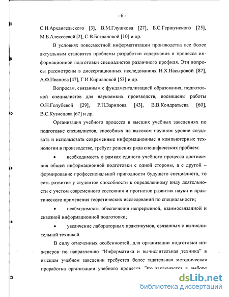 В условиях повсеместной информатизации производства все более актуальным становятся проблемы разработки содержания и процесса информационной подготовки специалистов различного профиля. Эти вопросы рассмотрены в диссертационных исследованиях Н.Х.Насыровой [87], А.Ф.Иванова [47], Г.И.Кирилловой [53] и др.