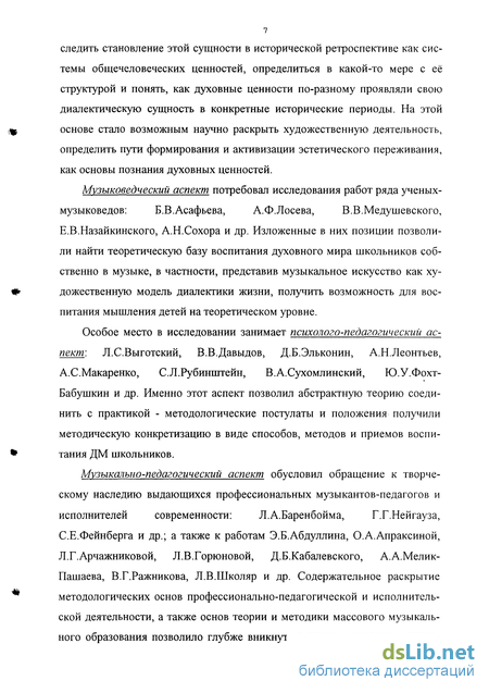 музыковедов: Б.В.Асафьева, А.Ф.Лосева, В.В.Медушевского,